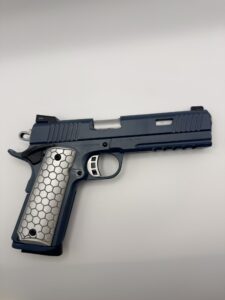 Precision laser engraving on pistol slides. Custom artwork, logos, or text. Compatible with all major handgun platforms including Glock, SIG, S&W, Springfield, and more.